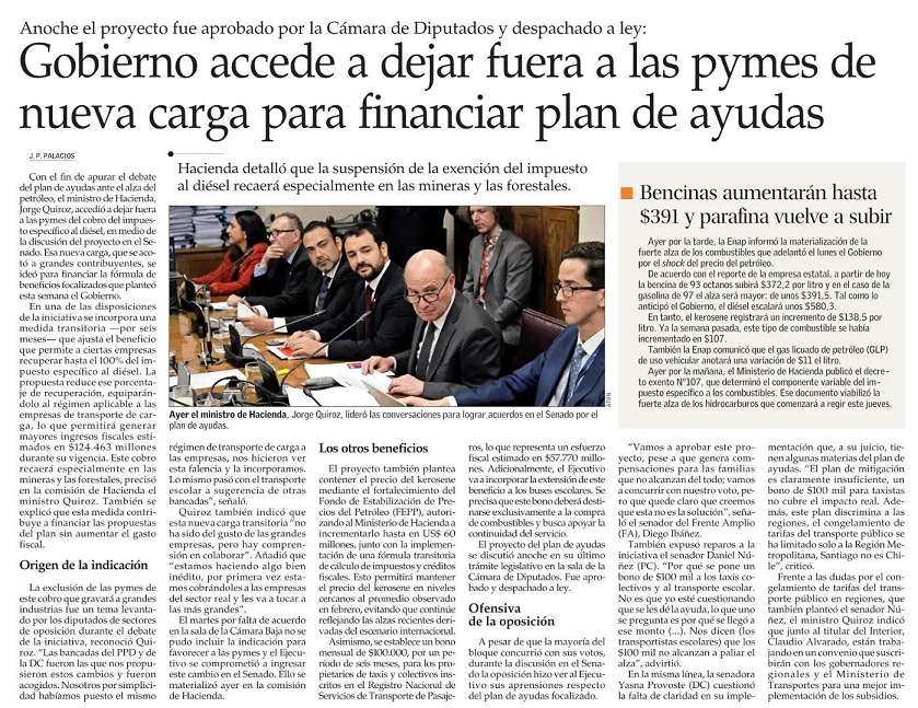 Gobierno accede a dejar afuera a la Pymes de nuevas cargas para finaciar plan de ayudas
